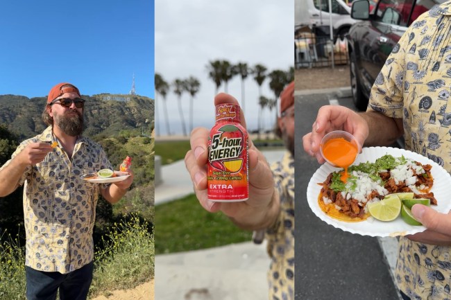 One 5‑hour ENERGY® Spicy Cinco De Mango shot of caffeine, a wallop of B‑vitamins, and a mango‑habanero flavor that starts sweet and finishes like a habanero smack to the lips. It’s a tad bit unhinged, just like committing yourself to finding the best street taco spots while sitting in bumper-to-bumper Los Angeles traffic.